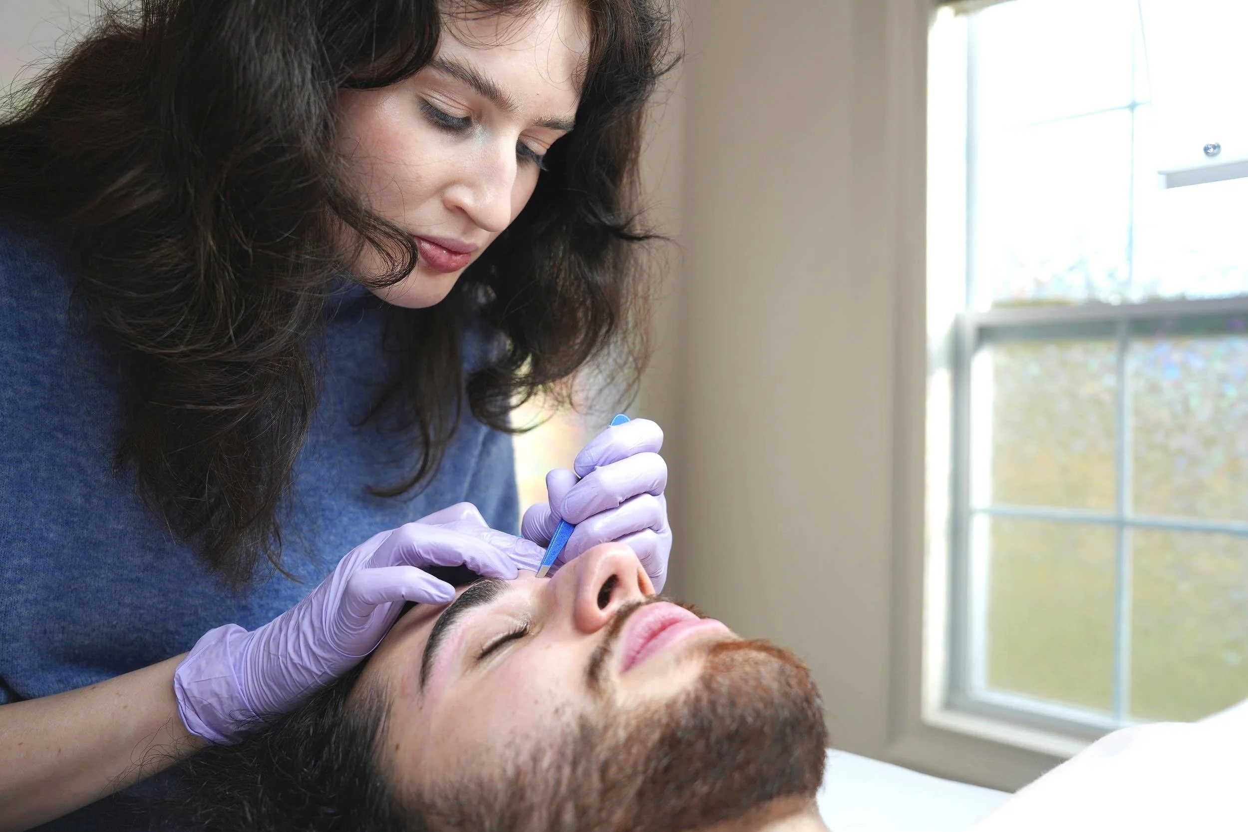 A common phrase in the eyebrow profession is that “eyebrows are sisters, not twins,” meaning that the goal is not to get them to be identical. I try to get eyebrows as symmetrical as possible, focusing on harmony with your facial features. No one's face is perfectly symmetrical, so it is not realistic to have identical eyebrows. What is more important than being a mirror image of the other side of the face is overall facial balance. I take into account your facial structure when doing your brow map, so we have brows that seem perfect for you.